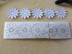 Take approx. 1metre of thread and add a needle. Thread on approx. 8cm (3″) of size 15 ivory seed beads followed by 3 x size 15 gold tone seed beads and 1 x size 15 ivory again. Move these beads down the thread leaving approx. 15cm of tail thread.