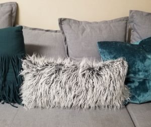 But it doesn’t really match. Oops. Our walls are cream and not going to be painted any time soon. Our floor is a really ugly cream/brown mix. And we got a gray couch.